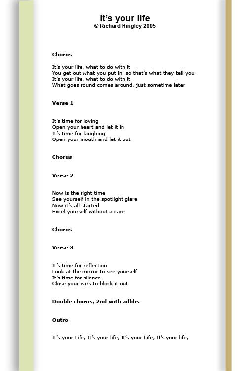 All lyrics listed here are the copyright of Richard Hingley and may not be reproduced or copied without the permission of the artist.